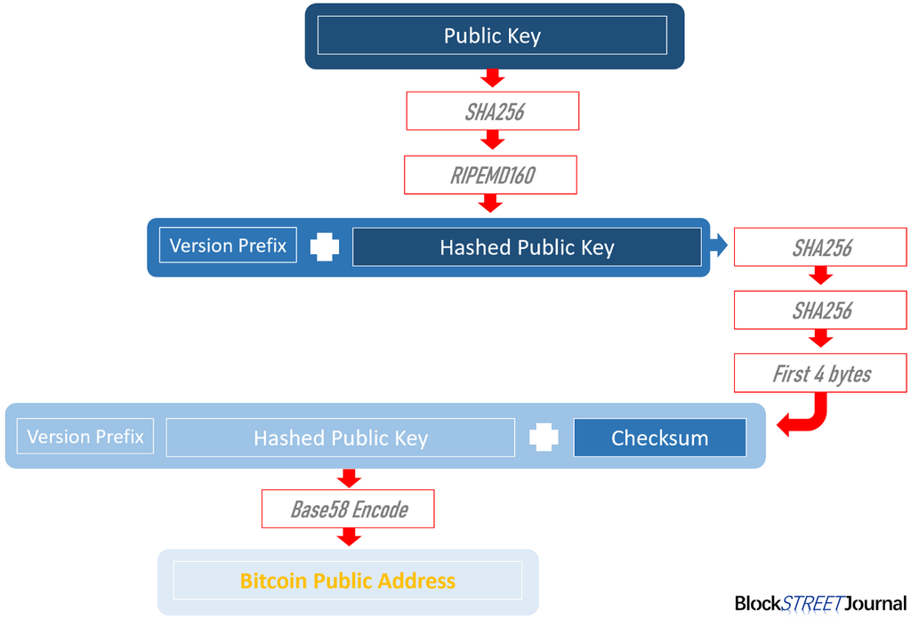 From the public key, different hashing and encoding algorithms can be applied to create a public address, which is used for the depositing of crypto currencies.