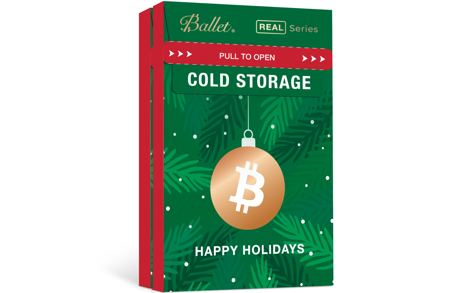 REALシリーズのコールドストレージには、コールドストレージから暗号通貨を送信するために必要な2つの隠されたコンポーネントも含まれています:暗号化されたプライベートキーとそれを解除するためのパスフレーズです。暗号化されたプライベートキーは、入金アドレスのQRコードステッカーの下に隠されています。24文字のパスフレーズはコールドストレージにレーザー刻印されており、宝くじスタイルのスクラッチオフ素材のストリップの下に隠されています。コールドストレージから暗号通貨を送信したい場合は、QRコードステッカーを剥がして暗号化されたプライベートキーを明らかにし、スクラッチオフ素材を取り除いてパスフレーズを明らかにする必要があります。
